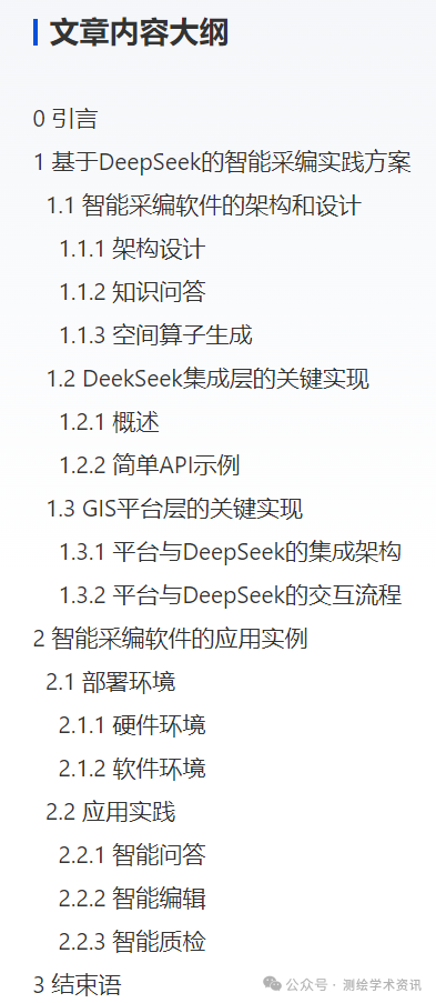 本文围绕DeepSeek与GIS平台融合方法展开研究,重点探索自然语言交互、任务自动生成与多模态地理数据处理的一体化集成架构,以提升地理信息生产的智能化水平和业务响应效率。