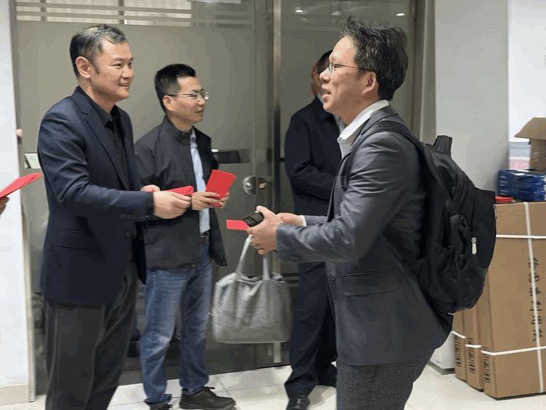 一份温暖的仪式感,依旧准时赴约。公司一众高管早早守候在各大门前,面带笑意,为每一位返岗伙伴送上新春问候与红彤彤的开工利是。满格元气在指尖传递,更为新一年的前行注入温暖而坚定的力量。