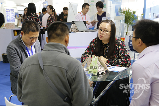 在特装展位T-A10,南方数码以一身科技蓝搭配圆弧的亮眼造型引人瞩目,展位人气火热,重点展示的iData系列产品和重磅推出的“三调”方案吸引了众多观展客户前来洽谈。
